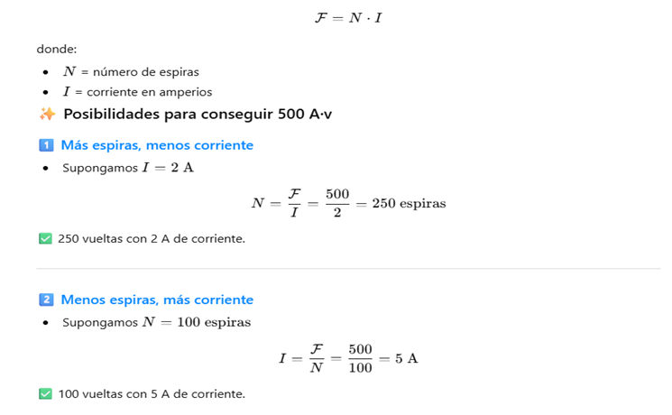 👉 La fuerza magnetomotriz es lo que "empuja" al flujo magnético a través de un circuito magnético.
